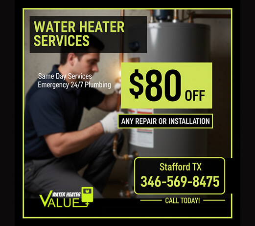 When you need reliable hot water, you require the professionals at Value Water Heater Stafford TX. We are your local, full-assistance water heater specialists, dedicated to providing outstanding support to the Stafford, Texas, community and surrounding areas like Sugar Land, Missouri City and Richmond.